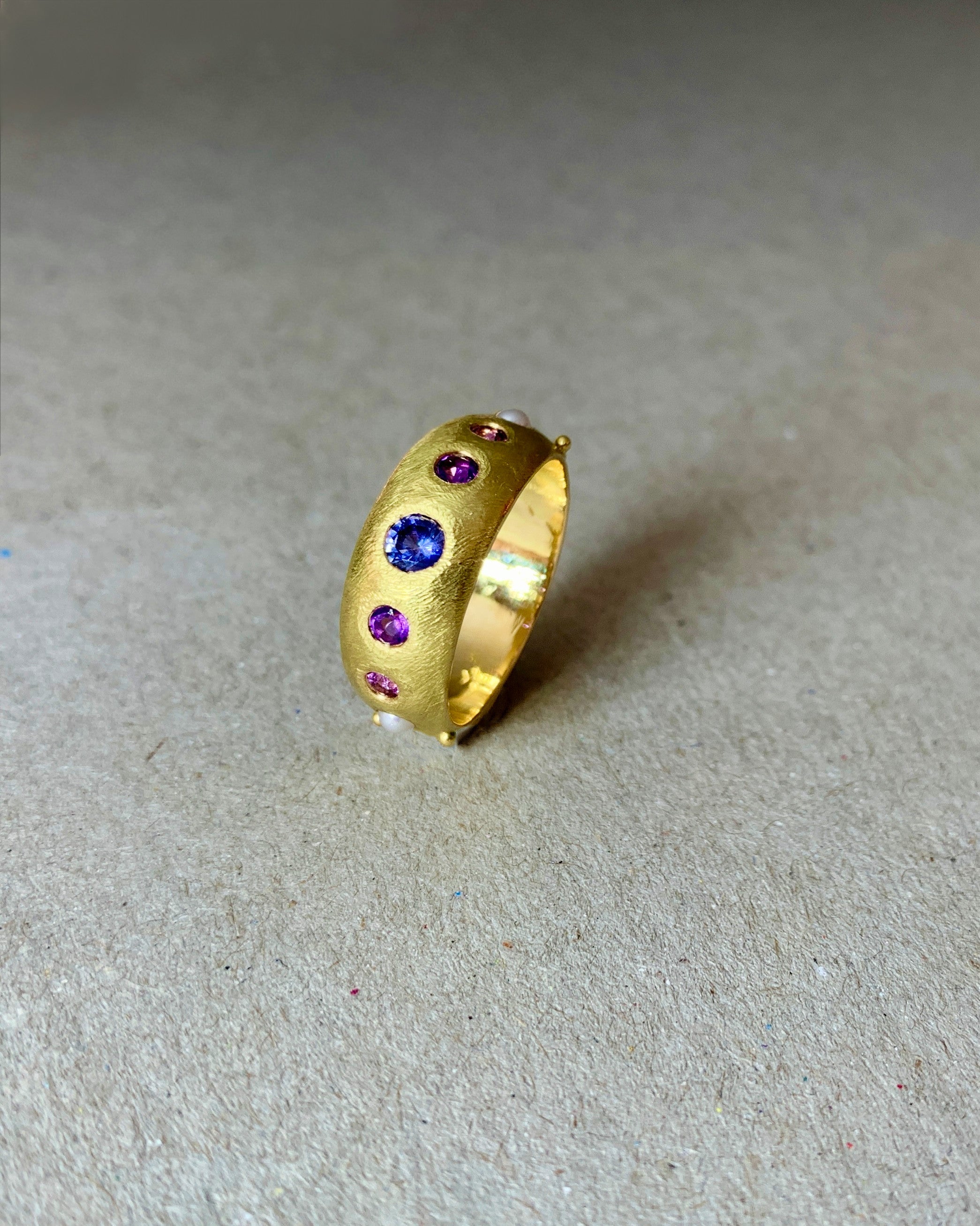 Items set with stones require particular care and attention. Rings are particularly vulnerable to shocks that occur in everyday life as they are more exposed than earrings or necklaces. If your item of jewelry falls on a hard surface, make sure your stones are undamaged or haven't become loosened by the shock. It is important to clean stone-set jewelry frequently as dirt and grime may accumulate around or underneath the stone. To clean your stone-set jewelry, you can place it in some warm water with a few drops of liquid dish soap and let it soak. When you remove it from the water/soap mixture, brush it gently with a soft bristle toothbrush, rinse, and gently air dry. Scrubbing too hard may scratch the surface of certain stones or the polish of the metal. Cleaning gold vermeil in this manner may accelerate the process of the gold plating wearing off, so infrequent cleaning is best. Opals, pearls, turquoise, and coral should never be left to soak in warm water as this will damage them. Instead, it is advised to clean them under lukewarm running water.