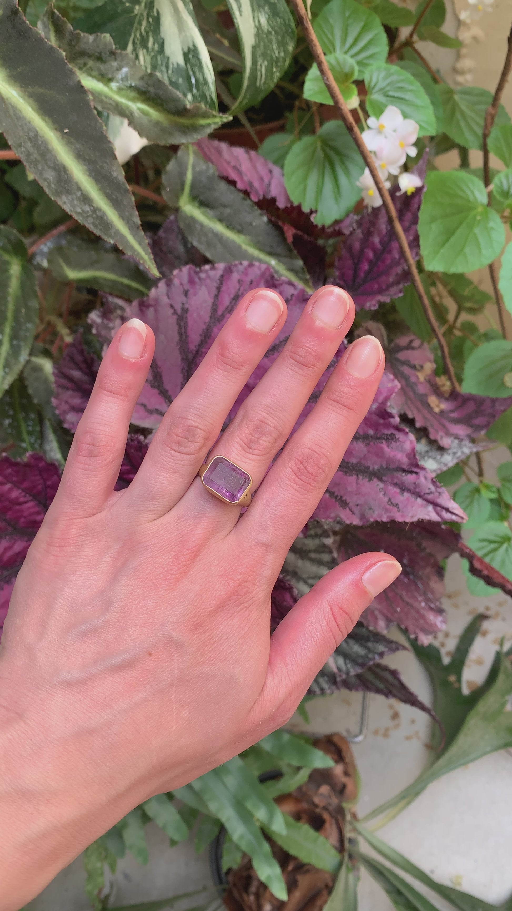 The Amethyst & Ruby Ring is a one-of a kind item made in 24 karat gold vermeil which cannot be resized.