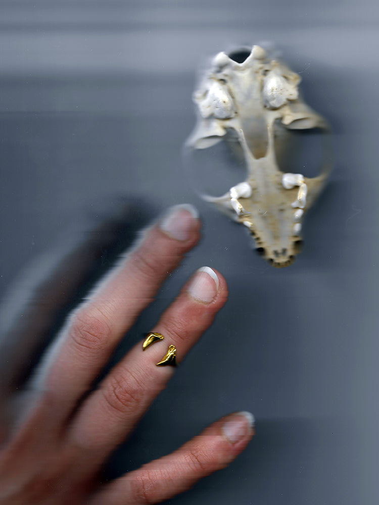The Cat Tooth Knuckle Ring is a delicate and small adornment available in 18 karat Responsible Jewelry Council certified gold.