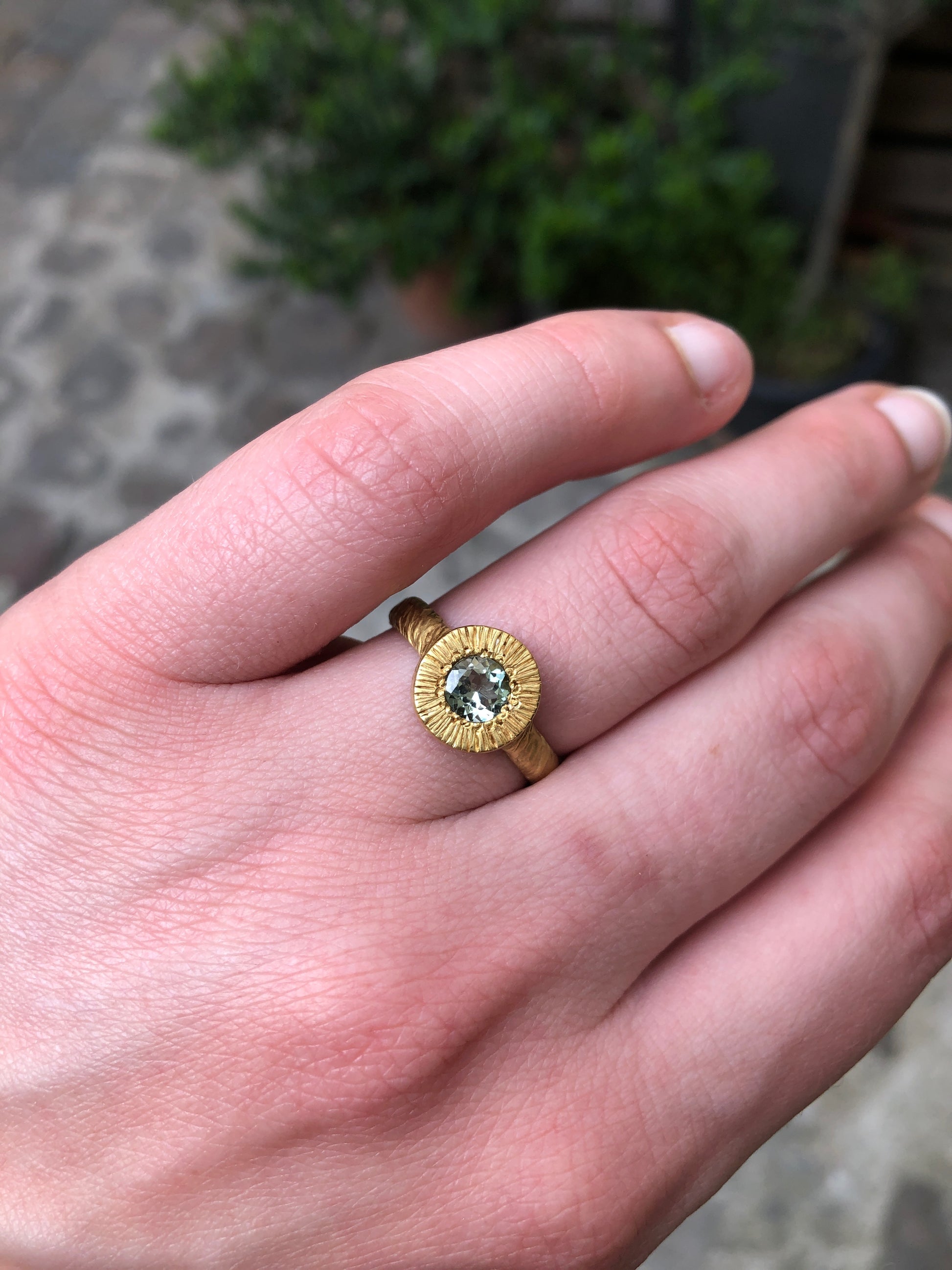 Each Parhelion ring is unique and hand sculpted to order before being cast in 18 karat Responsible Jewelery Council certified gold. This means that the ring you receive may differ slightly from the one in the photo.